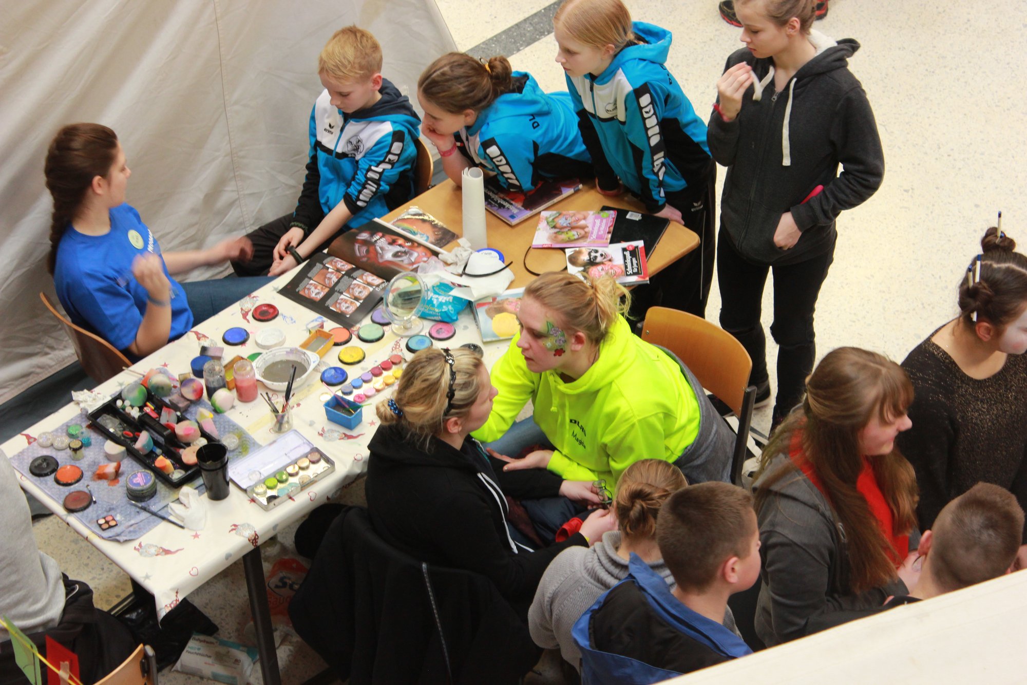 Probiere verschiedene Bewegungsspiele aus, von Crossfit-Parcours bis zu Gummitwist. Zeige deine Fertigkeiten auf der Slack-Line. Auf unserem Gelände gibt es viele Möglichkeiten, dich aktiv zu betätigen. Es wird außerdem in der Turnhalle einige Gesellschaftsspiele geben, aber auch verschiedene Aktionen, an denen man teilnehmen kann, wie zum Beispiel 1,2 oder 3.